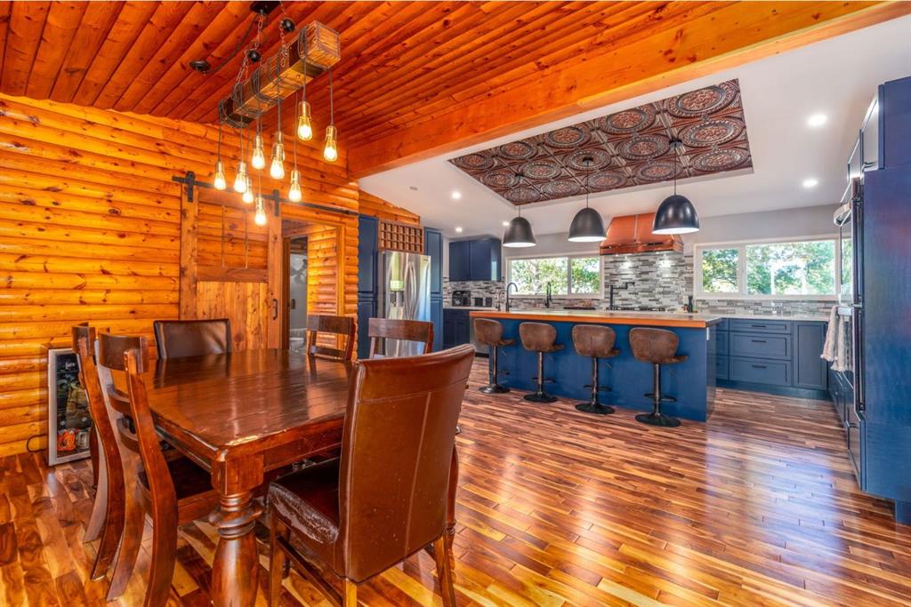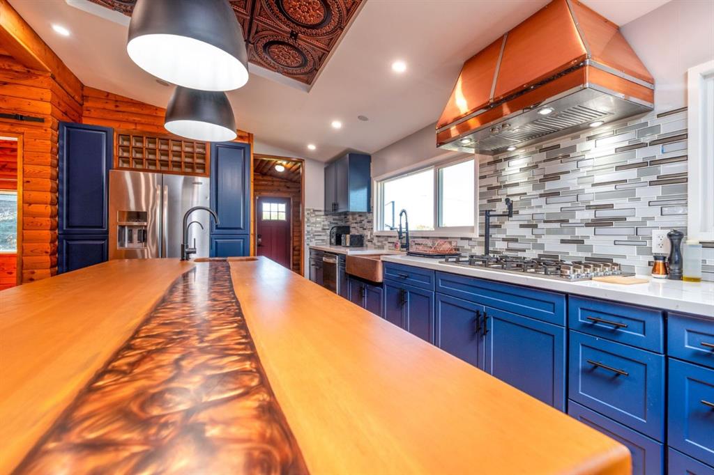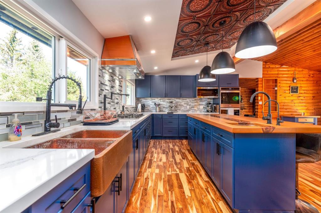 Tucked just outside the city limits of Lloydminster — yes, close enough to still get SkipTheDishes — this stunning 3.74-acre property offers the perfect blend of rural tranquility and urban accessibility. This is truly a once-in-a-lifetime opportunity to own a beautifully updated log home surrounded by meticulously landscaped grounds and countless unique features. Step inside to discover a dream chef’s kitchen that is sure to impress. Completely customized, this show-stopping space includes: All-new cabinetry with copper accents (sink, hood fan, and ceiling detailing) Live-edge oversized island Quartz countertops High-end modern appliances, including a gas range, built-in microwave, and double oven Convenient pot filler and thoughtful layout, perfect for entertaining and everyday living Updates continue throughout the home with new windows (2024), water softener (2023), fresh paint, upgraded electrical, and more. Boasting generous square footage, the home includes a converted indoor pool room now serving as a luxurious master retreat. The possibilities here are endless — transform this space into a spacious great room, a creative studio, or a dream home office for your business. Whatever your vision, this home can make it happen. Step outside and be greeted by: A wrap-around deck ideal for sipping your morning coffee A detached double garage AND a detached single garage Additional outbuildings for storage or hobbies A custom-built bus shelter (bonus: located within the Lloydminster school district!) This is more than a home — it's a lifestyle. With peaceful surroundings, thoughtful upgrades, and unmatched character, this property offers the best of both worlds: country serenity and city convenience. Don't miss your chance to own this extraordinary piece of paradise — schedule your private viewing today!